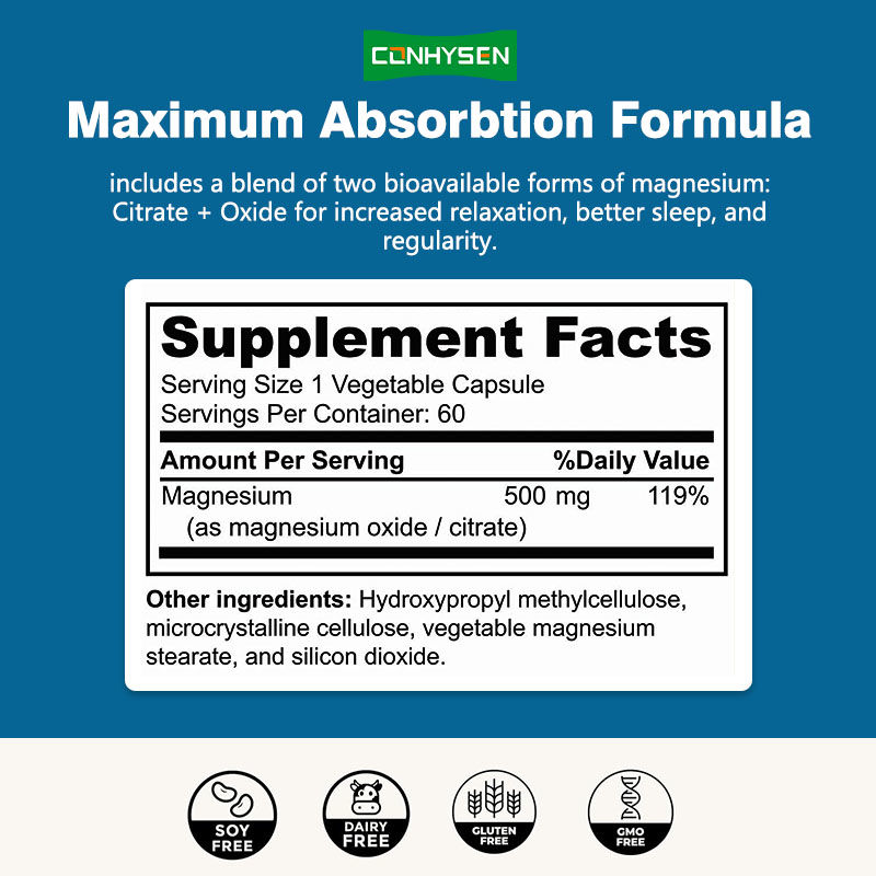 Magnesiumkapseln sind Nahrungsergänzungsmittel, die hauptsächlich aus Magnesiumelementen oder Magnesiumverbindungen bestehen und den Körper mit dem notwendigen Mineralmagnesium versorgen sollen.Als viertes Hauptkation im menschlichen KörperMagnesium spielt eine entscheidende Rolle in über 300 biochemischen Reaktionen und beteiligt sich an wichtigen physiologischen Prozessen wie dem Energiewechsel, der Proteinsynthese und der Übertragung von Nervensignalen.Magnesiumkapseln enthalten verschiedene Formen von Magnesiumsalzen, wie Magnesiumoxid, Magnesiumsitrat und Glycin-Magnesium, in den Kapseln,eine bequeme und effiziente Ergänzung von Magnesium für Menschen mit unzureichender Magnesiumzufuhr aufgrund einer monotonen Ernährung oder besonderen physiologischen Bedürfnissen.