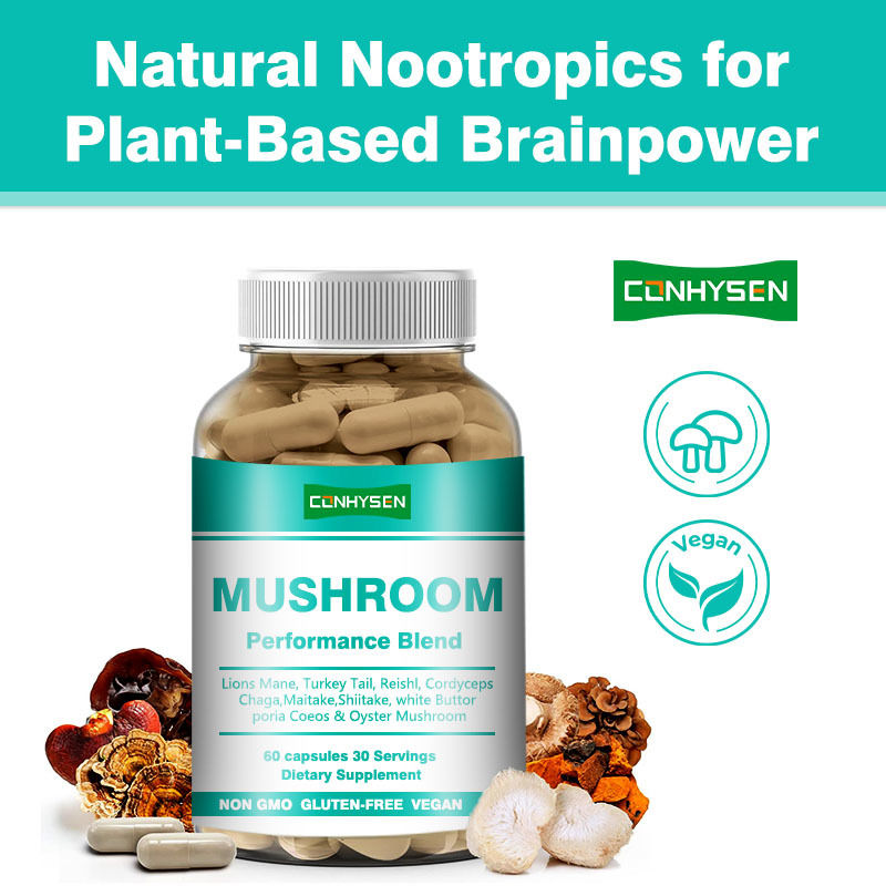 Premium Custom Mushroom Performance Blend Kapseln Unterstützt die kognitive Funktion Ohne Gentechnik