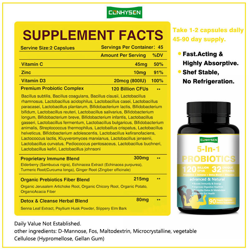 Großhandel Kundenspezifische 5-in-1 Präbiotische Kapseln Regulieren die Immunfunktion Eigene Immunmischungs-Kapsel
