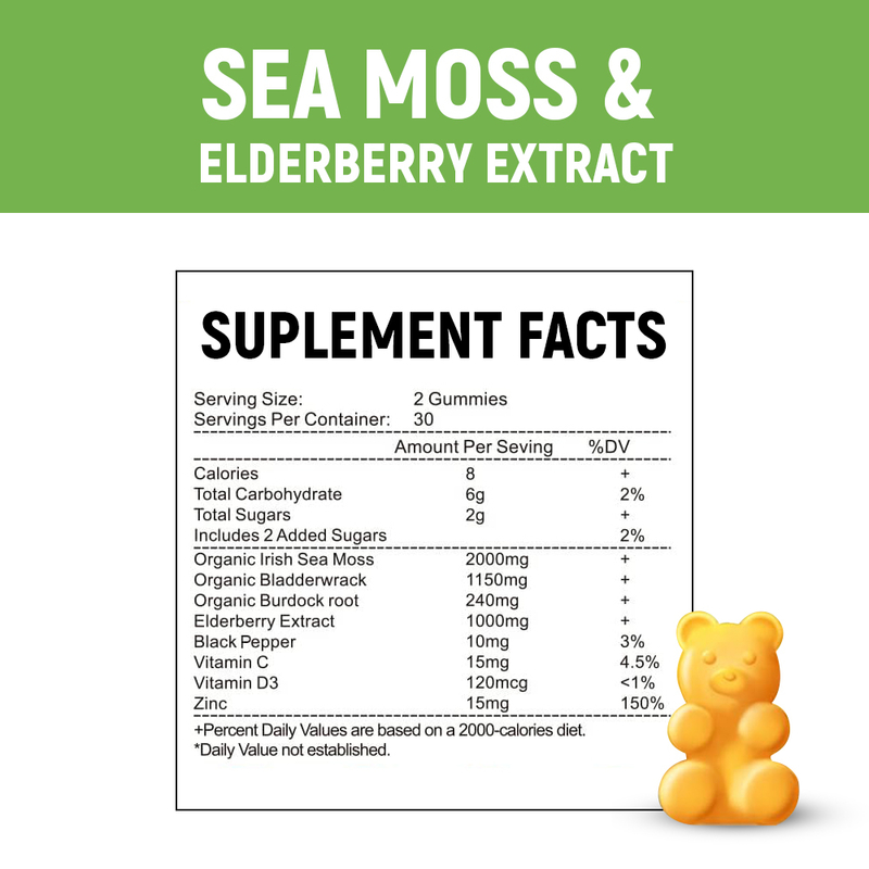 Bio-Irischer See-Moos, Vitamin C, Vitamin D3, Zink, Bio-Blasentang, Bio-Klettenwurzel, Holunderbeerenextrakt, Schwarzer Pfeffer