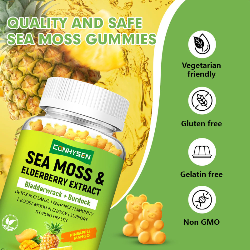 Diese Sea Moss Gummies, die von Guangdong Kangsheng Pharmaceutical Technology Co., Ltd. auf den Markt gebracht wurden, werden aus hochwertigem irischem See-Moos als Hauptrohstoff hergestellt und mit moderner Technologie verfeinert. Sea Moss Gummies werden aus rein natürlichen Pflanzenextrakten hergestellt und enthalten keine künstlichen Farbstoffe, Konservierungsmittel oder Gluten. Sie sind für alle Arten von Menschen geeignet. Das Produkt wurde wissenschaftlich formuliert, um 72 Spurenelemente wie Jod, Kalzium und Magnesium aus den Algen vollständig zu erhalten. Natürliche Fruchtsäfte werden zur Aromatisierung hinzugefügt, die sowohl für Kinder als auch für Erwachsene geeignet ist. Dieses Produkt ist besonders geeignet für Menschen mit geringer Immunität, die oft bis spät in die Nacht aufbleiben und Menschen mit unregelmäßiger Ernährung. Die einzigartige Formel von Guangdong Kangsheng Pharmaceutical Technology Co., Ltd. hilft, die körperliche Fitness zu verbessern, die Funktion des Verdauungssystems zu verbessern und den Stoffwechsel zu fördern.