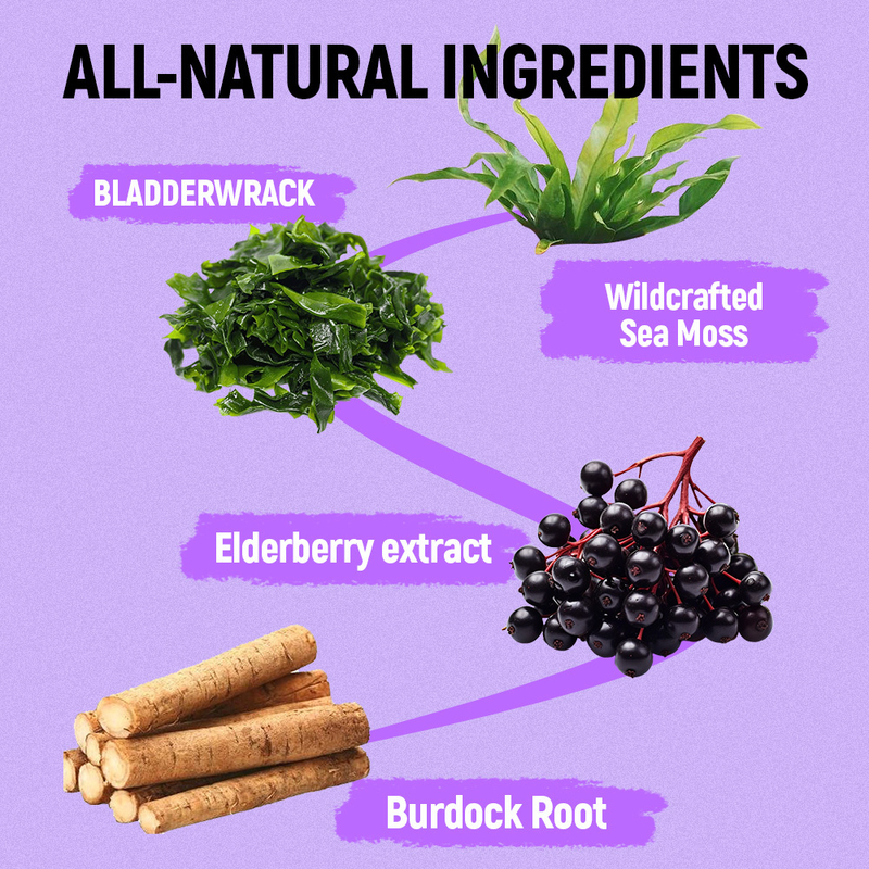 Meeresmoos, Blasenwurzeln, Burdenwurzeln, Edelbeerextrakt, Zink, Vitamin C