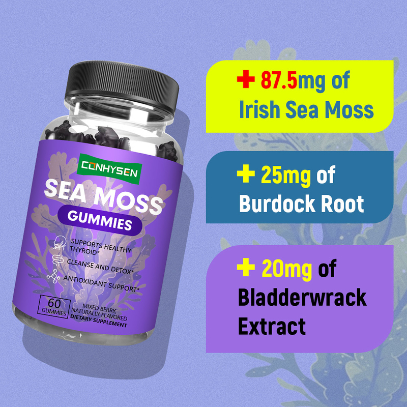 Diese Sea Moss Gummies hergestellt von Guangdong Kangsheng Pharmaceutical Technology Co., Ltd. werden aus hochwertigem irischen Seealgen als Hauptrohstoff hergestellt und mit moderner Technologie verfeinert. Sea Moss Gummies werden aus rein natürlichen Pflanzenextrakten hergestellt und enthalten keine künstlichen Farbstoffe, Konservierungsmittel oder Gluten. Sie sind für alle Arten von Menschen geeignet. Das Produkt wurde wissenschaftlich formuliert, um 72 Spurenelemente wie Jod, Kalzium und Magnesium aus den Algen vollständig zu erhalten. Natürliche Fruchtsäfte werden zur Aromatisierung hinzugefügt, die sowohl für Kinder als auch für Erwachsene geeignet ist. Dieses Produkt ist besonders geeignet für Menschen mit geringer Immunität, die oft lange aufbleiben, und für Menschen mit unregelmäßiger Ernährung. Die einzigartige Formel von Guangdong Kangsheng Pharmaceutical Technology Co., Ltd. hilft, die körperliche Fitness zu verbessern, die Funktion des Verdauungssystems zu verbessern und den Stoffwechsel zu fördern.