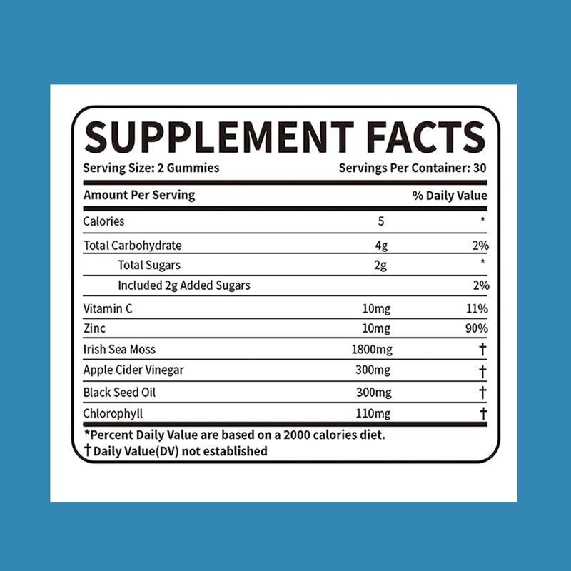 Irish Sea Moss, Apfelessig, Zink, Vitamin C, Chlorophyll, Schwarzkümmelöl