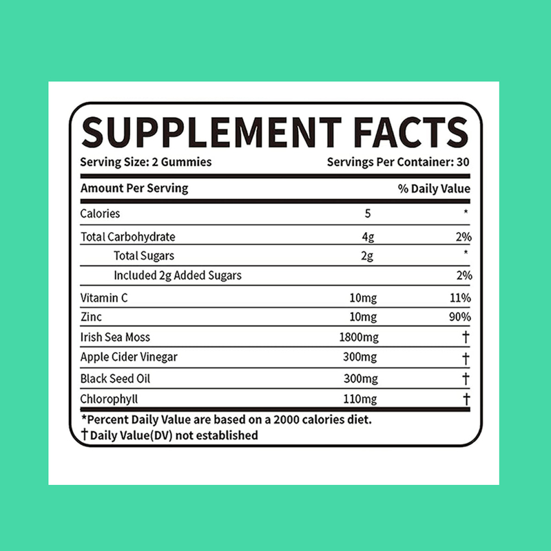 Irish Sea Moss, Apfelessig, Zink, Vitamin C, Chlorophyll, Schwarzkümmelöl