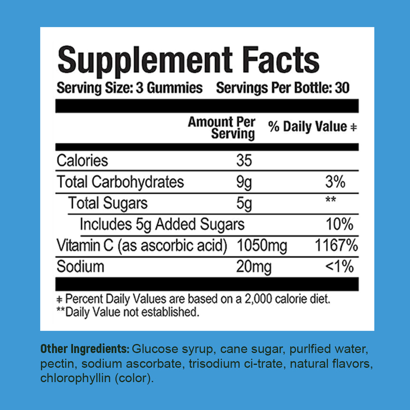 Großhandelspreis 1050mg Vitamin C Gummibärchen für gesundes Haar, Haut und Nägel, ODM