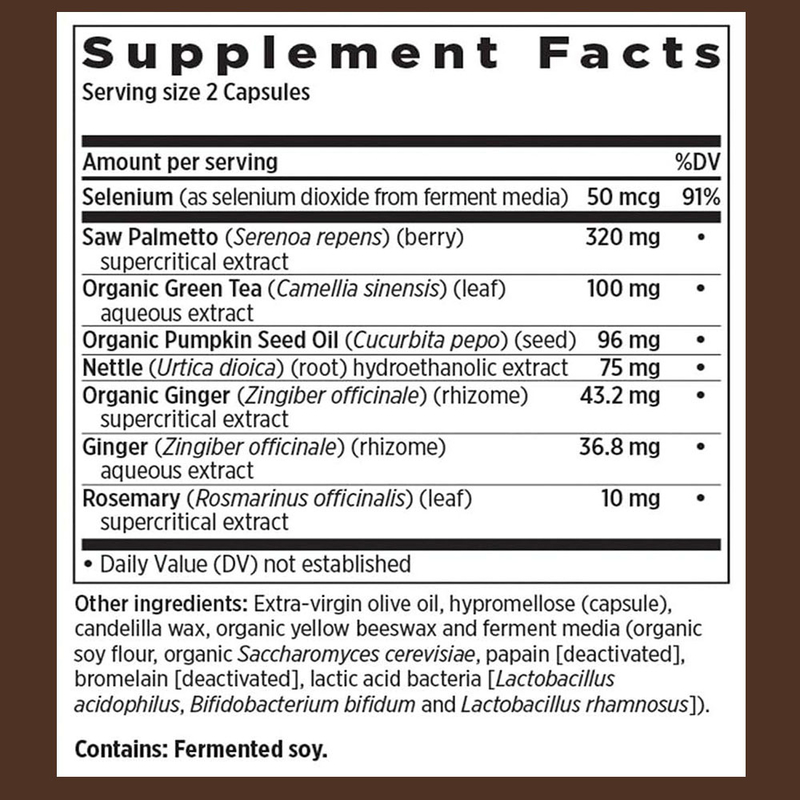 Selenium, Saw Palmetto, Bio-Grüntee, Bio-Kürbissamenöl, Brennnessel, Bio-Ingwer, Ingwer, Rosmarin