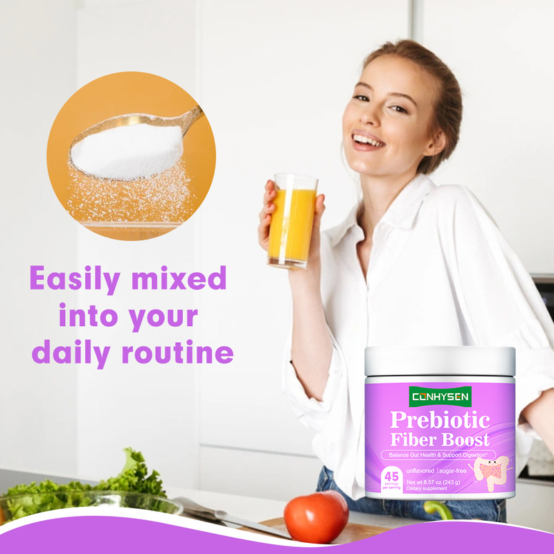 Unsere spezielle präbiotische Mischung kombiniert lösliche Fasern aus vielen natürlichen Quellen, darunter Zichorienwurzelinulin und FOS, speziell entwickelt, um Verstopfung und Blähungen zu behandeln.Klinische Studien zeigen, dass diese einzigartige Formulierung die Stuhlgangshäufigkeit um 45% erhöht und gleichzeitig durch optimierte Fermentationsprozesse das Aufblähen reduziert..